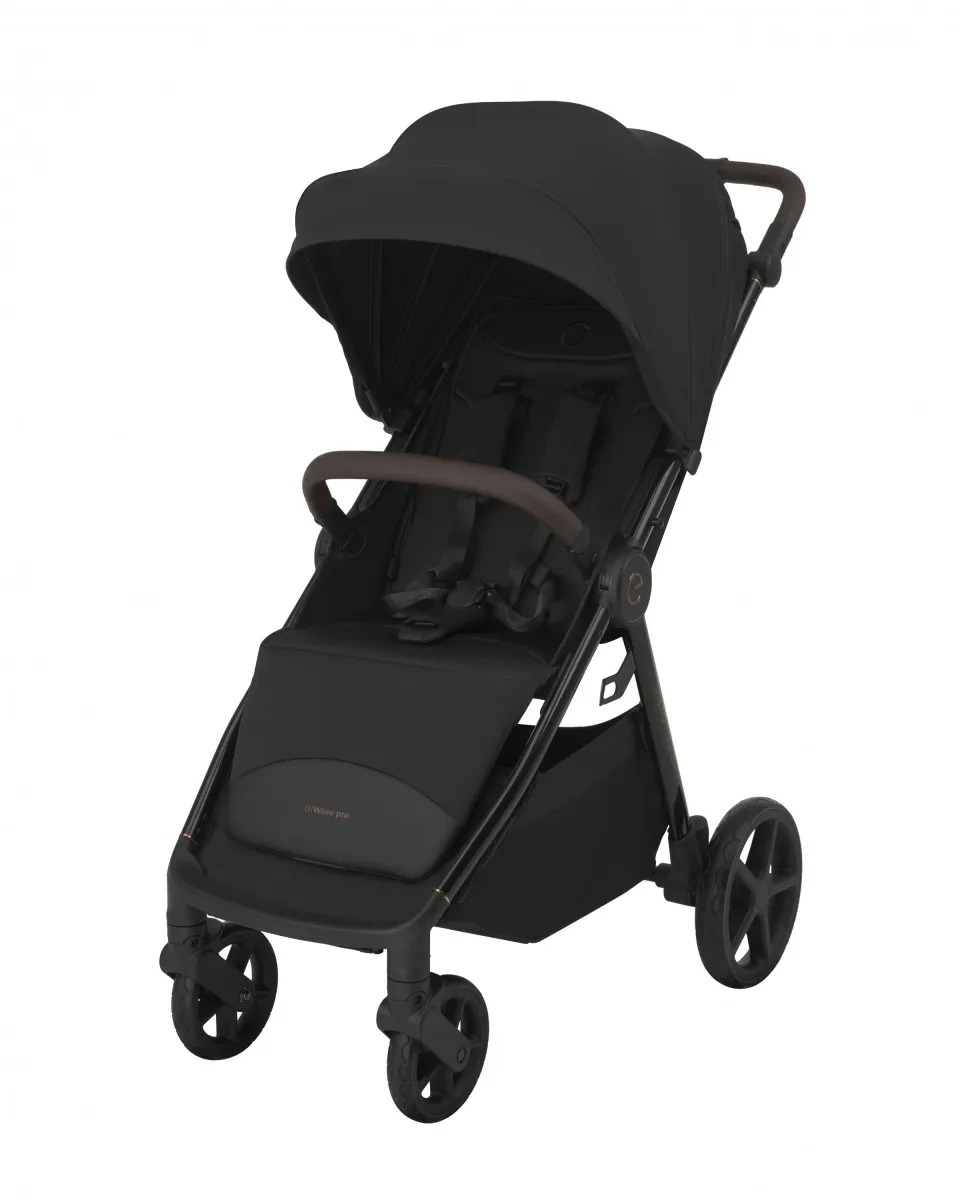 1. Инновационный дизайн и детали: Коляска доступна в четырёх элегантных цветах на глянцевой чёрной раме с лёгким блеском и лёгкими медными акцентами. Новая, привлекательная отделка ручки для родителей выполнена из коричневой эко-кожи. Современный дизайн и изменённая форма коляски придают ей свежий, динамичный вид. Новая, лёгкая и прочная ткань с гидрофобным покрытием и защитой UV50+ подкупает своей модной цветовой палитрой. Сумка, входящая в комплект Wave Pro, увеличена до максимального размера и имеет форму сумки-шопера.