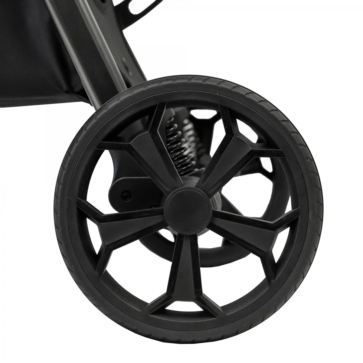 Необслуживаемые колёса с улучшенным протектором — обеспечивают надёжное сцепление с дорогой и плавный ход на любых покрытиях, не требуют подкачки и дополнительного ухода. Дополнительный комфорт при ежедневных прогулках создаёт эффективная амортизация, сглаживающая неровности дороги.